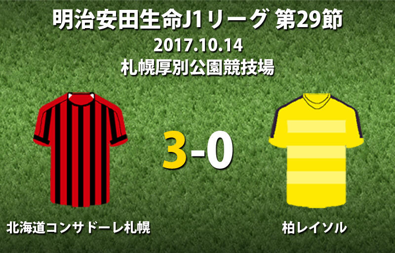 ▽明治安田生命J1リーグ第29節、北海道コンサドーレ札幌vs柏レイソルが14日に行われ、3-0で札幌が勝利した。
