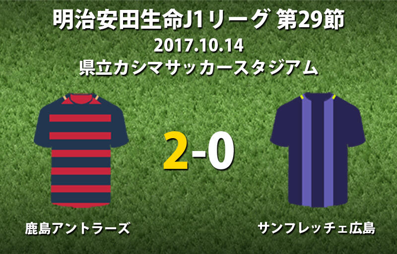 ▽明治安田生命J1リーグ第29節、鹿島アントラーズvsサンフレッチェ広島が14日に行われ、2-0で鹿島が勝利した。