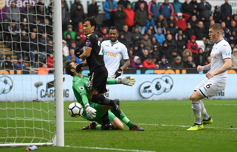 ▽前半終盤、ホームの声援を受けるスウォンジーが反撃に出るも、レスターの集中した守りを前に決定的なチャンスは作れず。前半はレスターの1点リードで終了した。
