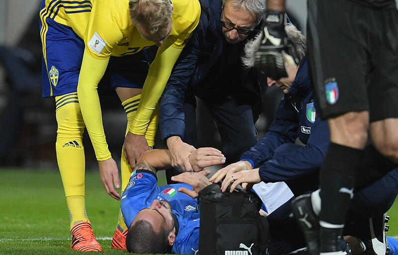 ▽ボヌッチは、10日に欧州予選プレーオフ1stレグのスウェーデン代表戦に先発出場。しかし、開始早々の8秒にFWオラ・トイヴォネンと競り合ったプレーでヒジを当てられ顔面から出血。その後、治療を受けたボヌッチは90分間プレーを続けたが0-1で敗戦。イタリアは15大会連続のW杯出場に黄色信号が灯った。