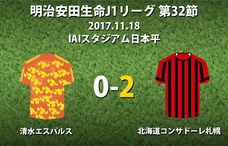 ▽明治安田生命J1リーグ第32節の清水エスパルスvs北海道コンサドーレ札幌が18日にIAIスタジアム日本平で行われ、0-2で札幌が勝利した。