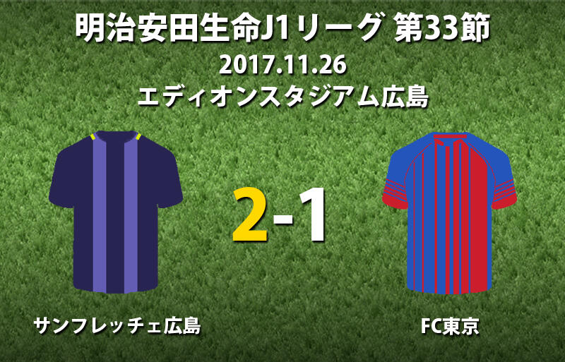 ▽明治安田生命J1リーグ第33節のサンフレッチェ広島vsFC東京が26日にエディオンスタジアム広島で行われ、2-1で広島が勝利した。