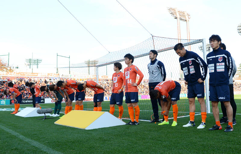 「今シーズンはJ1上位定着のための重要な一年と位置づけスタートいたしましたが、開幕から勝点を積み上げられず苦しい試合が続きました。2度の監督交代、強化本部長交代や選手補強などの改善策を図りましたが、残念ながら力及ばず、わずか2年での再降格という、本当に申し訳ない結果となりました。重ねてお詫び申し上げます」