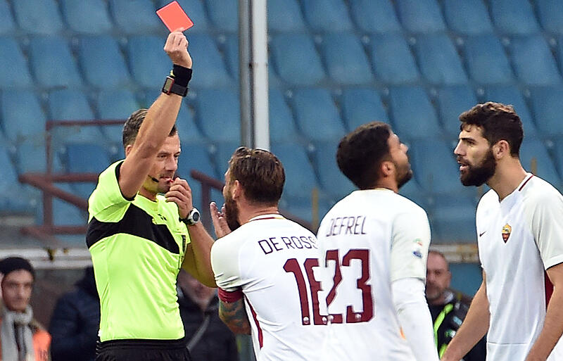 相手FWにビンタでPK献上&一発退場のローマMFデ・ロッシに2試合の出場停止処分