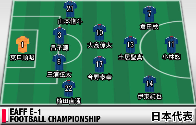 ▽本日12日の19時15分より味の素スタジアムで行われるEAFF E-1サッカー選手権の第2戦、日本代表vs中国代表のスターティングメンバーが発表された。