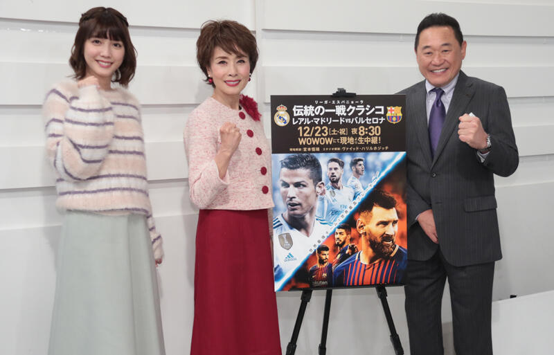 ▽WOWOWは22日、23日に行われるリーガエスパニョーラ第17節のレアル・マドリーvsバルセロナの“エル・クラシコ”を前に、「リーガダイジェストNEXT×ぷらすと クラシコSP」を配信。WOWOWリーガールで女優の松田るかさんや大のメッシファンである女優で歌手の小柳ルミ子さん、サッカー解説者の元日本代表DF松木安太郎さんが出演した。