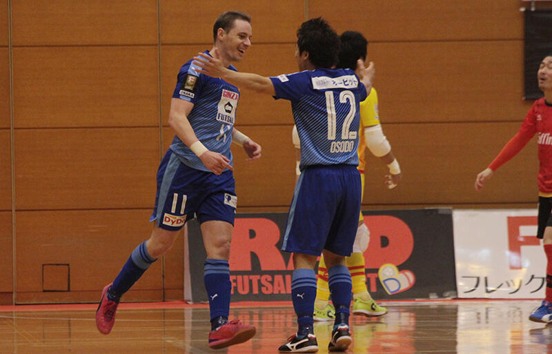 ▽ホーム最終戦を迎えた7位・浦安と、プレーオフ進出に向けて負けられない6位・大阪の一戦。試合は6分にアウェイの大阪がFPチアゴのゴールで先制すると、11分にFPクレパウジ・ヴィニシウスが追加点を奪って2-0にする。しかし、ホーム最終戦で負けられない浦安も直後にFP永島俊のゴールで1点差に詰め寄る。それでも大阪は前半終了間際にFPチアゴがこの日2点目となるゴールでリードを広げる。▽迎えた後半、攻勢を強めた浦安が22分にFP星翔太がファー詰めからゴールを決めて再び1点差に。しかし、その後大阪は、FP加藤未渚実が28分、36分と立て続けにゴールネットを揺らして試合を5-2にする。直後にパワープレーを開始した浦安は38分にFP加藤竜馬が豪快なシュートを決めたものの、反撃はここまで。浦安に5-3で競り勝った大阪が5位・府中との勝ち点差を2に縮めた。