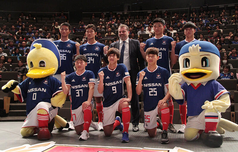 横浜FM新体制発表会、柏から加入のFW大津祐樹ら新加入選手7名がファン・サポーターからの質問に応対