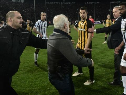 ギリシャで騒然…AEK戦の判定に不満のPAOK会長がピストル携えてピッチに侵入