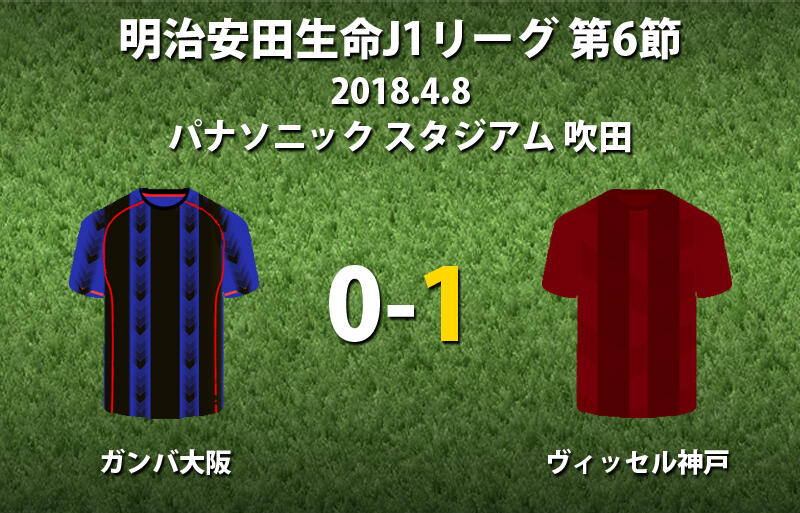 ▽8日にパナソニック スタジアム 吹田で行われた明治安田生命J1リーグ第6節のガンバ大阪vsヴィッセル神戸は、アウェイの神戸が1-0で勝利した。