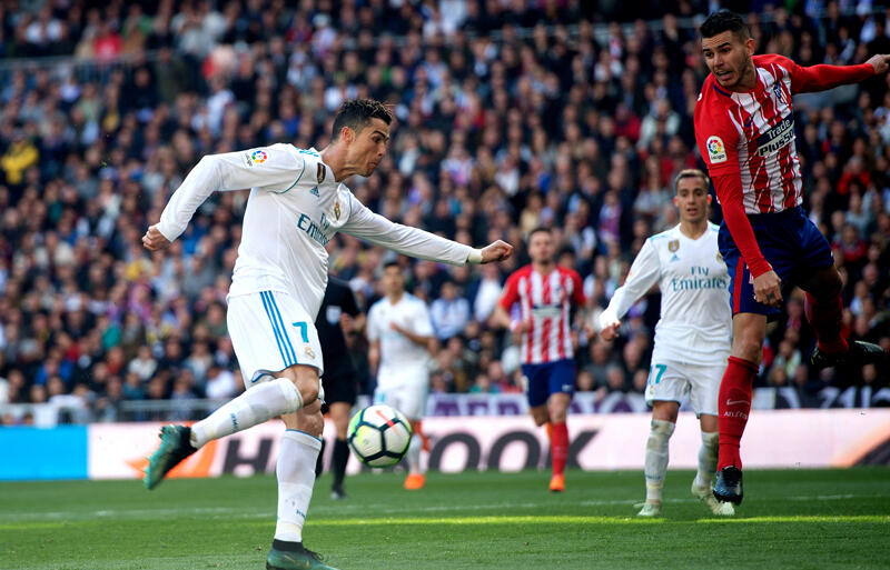 ▽レアル・マドリーがボールを動かしながらアトレティコの隙を窺う展開で立ち上がった中、10分に決定機。左CKからベイルがヘディングで逸らすと、ゴールエリア右のC・ロナウドが反応。ヒザで合わせたシュートがゴールに向かったが、ゴールライン上でGKオブラクにセーブされた。さらに直後のCKの流れからアセンシオのシュートが枠の左角に直撃した。