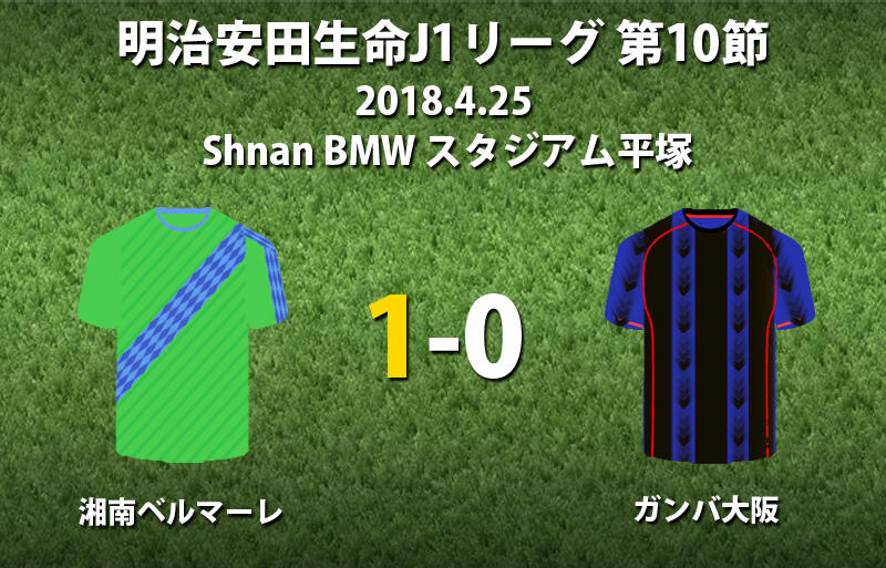 ▽明治安田生命J1リーグ第10節の湘南ベルマーレvsガンバ大阪が25日にShonan BMW スタジアム平塚で行われ、1-0で湘南が勝利した。