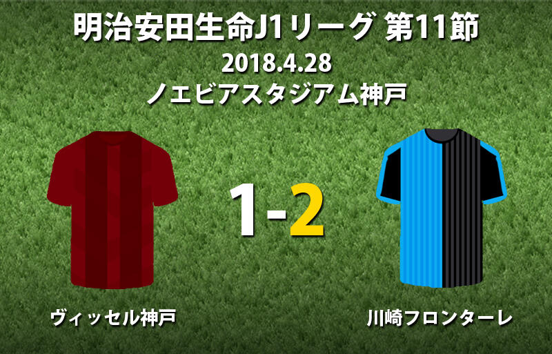 ▽明治安田生命J1リーグ第11節のヴィッセル神戸vs川崎フロンターレが28日にノエビアスタジアム神戸で行われ、2-1で川崎Fが勝利した。
