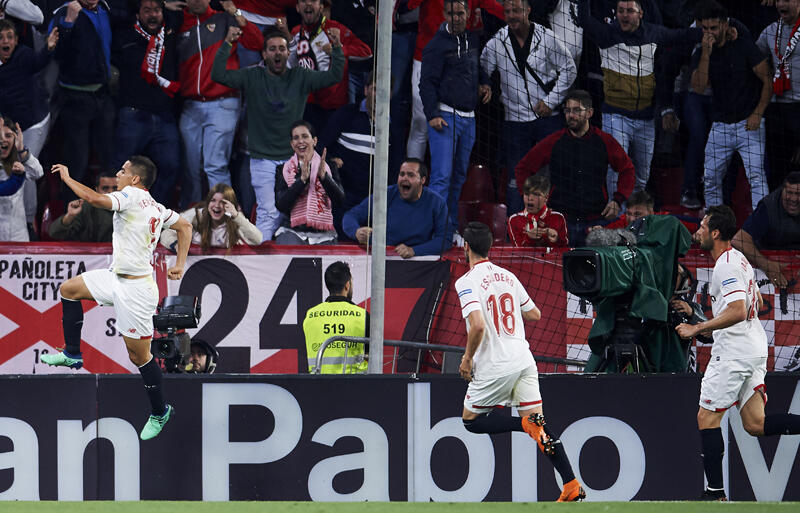 ▽しかし、自陣に引いて集中した守備を見せていたセビージャが先制する。26分、ロングボールをムリエルが競り勝って頭で落とすと、ボックス中央に抜け出したイェデルがGKとの一対一を制した。