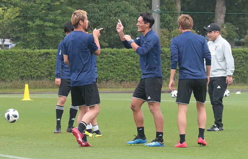 ▽この日のトレーニングでは、国内組のDF遠藤航(浦和レッズ)、DF槙野智章(浦和レッズ)、GK東口順昭(ガンバ大阪)とMF井手口陽介(クルトゥラル・レオネサ/スペイン)、MF乾貴士(エイバル/スペイン)が新たに合流。15名でのトレーニングとなった。