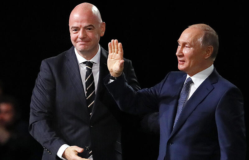 ▽この開幕戦ではロシアのゴールラッシュと共に注目を集めたのが、テレビの中継映像に盛んに映されていた貴賓席でのインファンティーノ会長の振る舞いだった。