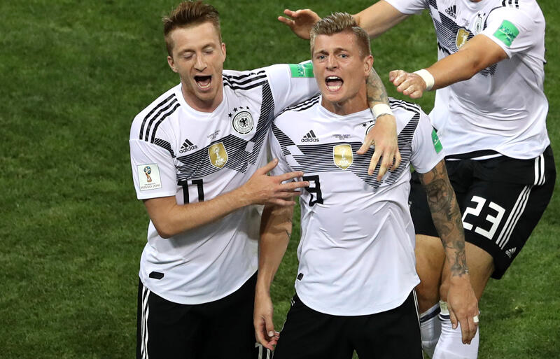 ▽初戦で黒星を喫する波乱スタートのドイツ代表は23日、ロシア・ワールドカップ(W杯)グループF第2節でスウェーデン代表と対戦。ロイスの得点で同点に追いついた中で退場者を出す苦境に立たされたが、後半アディショナルタイムのラストプレーからMFトニ・クロースのFK弾が決まり、劇的勝利を飾った。