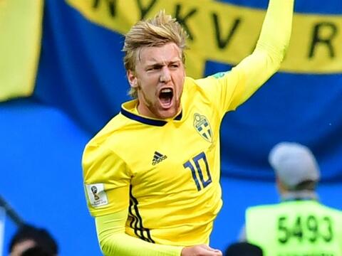 スウェーデン代表で10番を背負うエミル・フォルスベリは、スイス戦で決勝弾を挙げてベスト8進出を喜んだ。