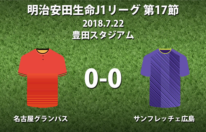▽明治安田生命J1リーグ第17節の名古屋グランパスvsサンフレッチェ広島が22日に豊田スタジアムで行われ、0-0のドローに終わった。