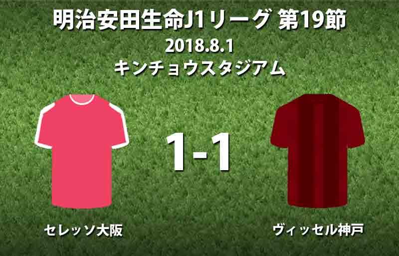 ▽明治安田生命J1リーグ第19節、セレッソ大阪vsヴィッセル神戸が8月1日に行われ、1-1の引き分けに終わった。