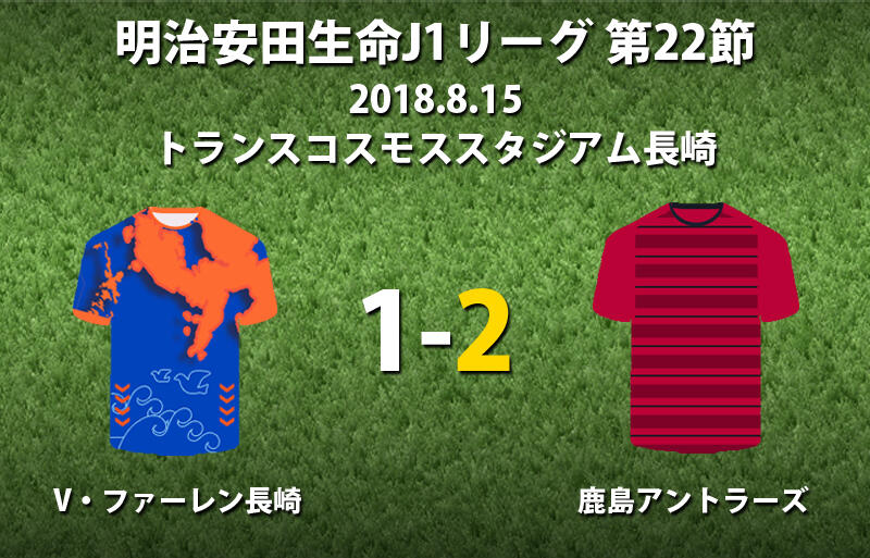 ▽15日、明治安田生命J1リーグ第22節のV・ファーレン長崎vs鹿島アントラーズがトランスコスモススタジアムで行われ、1-2でアウェイの鹿島が逆転勝利を収めた。