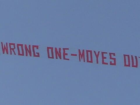 マンチェスター・Uの一部サポーターは2014年3月、当時クラブを指揮していたデイビッド・モイーズ氏の解任を求める横断幕を飛行機で飛ばした。クラブはその翌月、モイーズ氏を解任している。