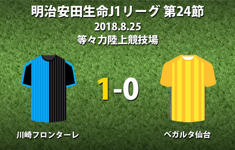 ▽25日に等々力陸上競技場で行われた明治安田生命J1リーグ第24節の川崎フロンターレ(2位/勝ち点43)vsベガルタ仙台(8位/同35)は、ホームの川崎Fが1-0で勝利した。