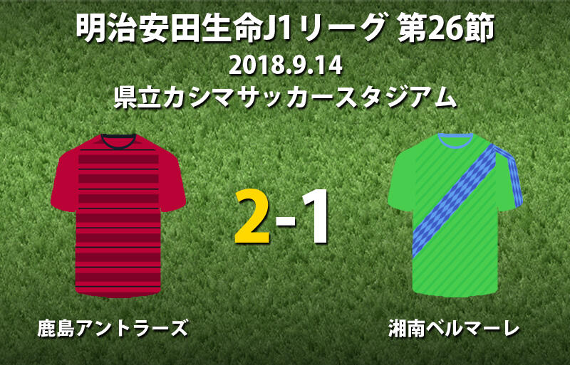 ▽明治安田生命J1リーグ第26節の鹿島アントラーズvs湘南ベルマーレが、14日に県立カシマサッカースタジアムで行われ、2-1で鹿島が勝利した。