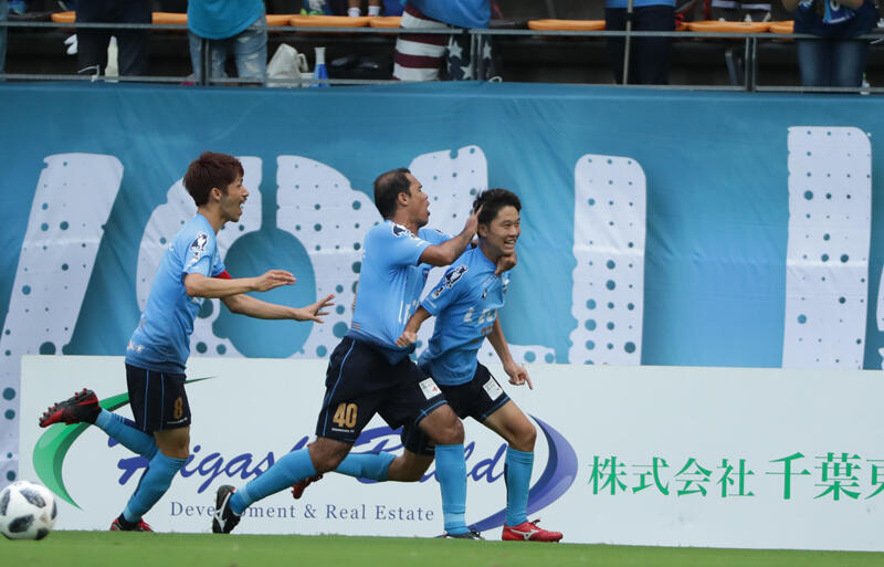 ▽3試合無敗中の千葉と、4試合ぶり白星で4位浮上を目指す横浜FCの一戦。試合はまずホームの千葉がチャンスを作る。12分、敵陣中央右からの溝渕のクロスは相手にクリアされたが、セカンドボールを拾った指宿がボックス手前から反転シュート。しかし、ここはGK南の正面に飛んでしまう。