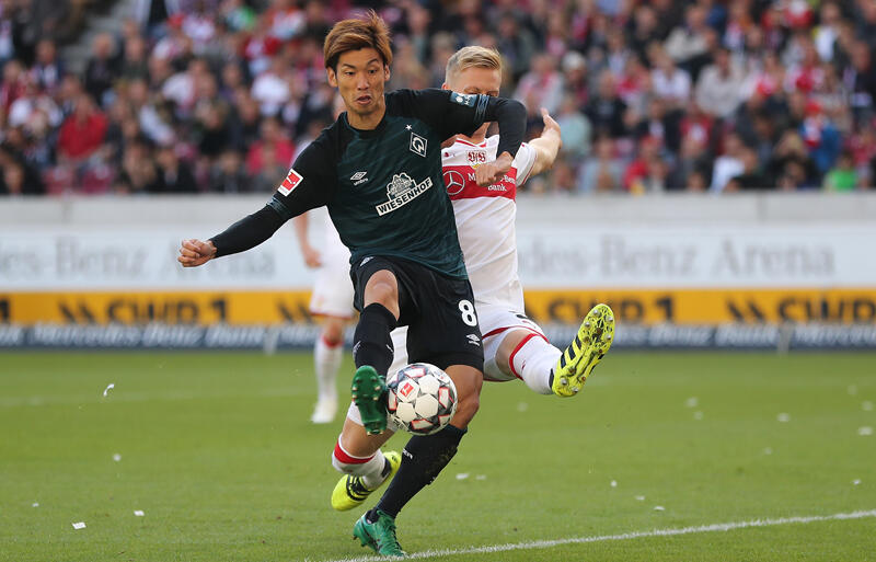 ▽2分け3敗と未勝利のシュツットガルトに対し、立ち上がりから攻勢に出たブレーメンは大迫が立て続けにゴールへ迫っていく。まずは開始3分、右サイドからのシャヒンのFKをニアサイドの大迫がヘッド。しかし、シュートは枠の左に外れた。