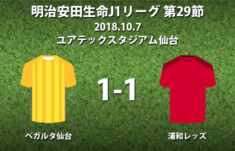 ▽7日にユアテックスタジアム仙台で行われた明治安田生命J1リーグ第29節のベガルタ仙台(勝ち点41/8位)vs浦和レッズ(同41/6位)は、1-1のドローに終わった。