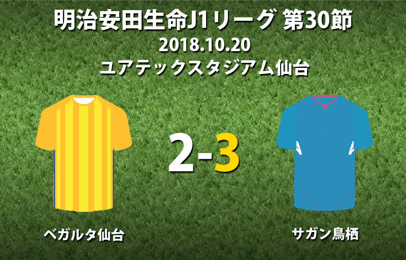 ▽20日、明治安田生命J1リーグ第30節のベガルタ仙台vsサガン鳥栖がベストアメニティスタジアムで行われ、2-3で鳥栖が勝利した。