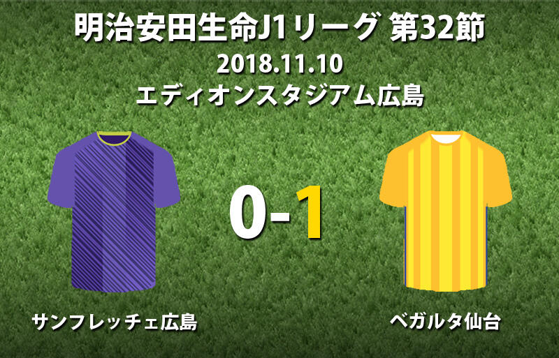 ▽明治安田生命J1リーグ第32節のサンフレッチェ広島vsベガルタ仙台が10日に、エディオンスタジアム広島で行われ、1-0で仙台が勝利した。