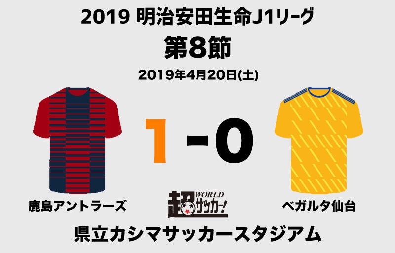 明治安田生命J1リーグ第8節の鹿島アントラーズvsベガルタ仙台が20日に県立カシマサッカースタジアムで行われ、1-0で鹿島が勝利した。
