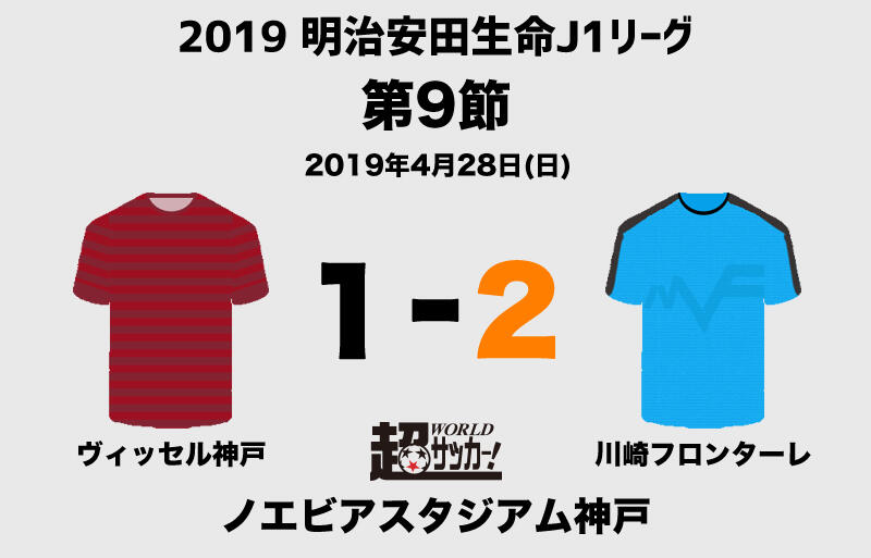 明治安田生命J1リーグ第9節のヴィッセル神戸vs川崎フロンターレが28日にノエビアスタジアム神戸で行われ、2-1で川崎Fが勝利した。