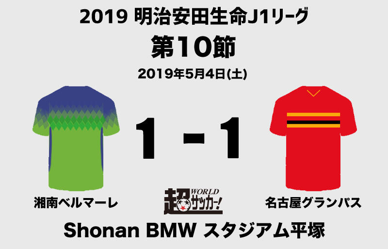 明治安田生命J2リーグ第12節の湘南ベルマーレvs名古屋グランパスが4日にShonan BMWスタジアム平塚で行われ、1-1のドローに終わった。