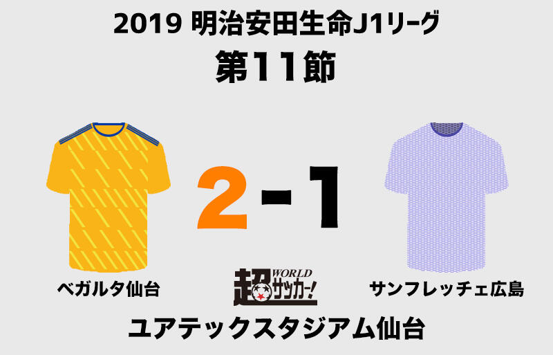 12日、明治安田生命J1リーグ第11節のベガルタ仙台vsサンフレッチェ広島がユアテックスタジアム仙台で行われ、2-1で仙台が勝利した。