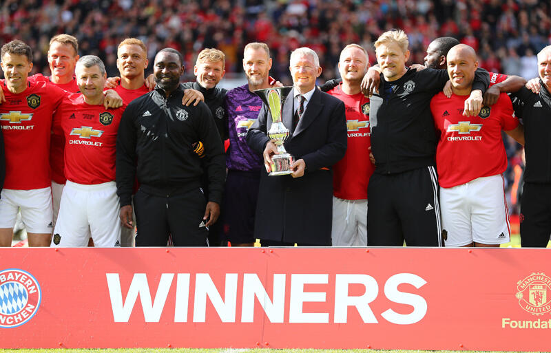 ユナイテッドは26日、1998-99シーズンのトレブルを記念したチャリティマッチとして、その当時のチャンピオンズリーグ(CL)決勝で歴史に残る名勝負を演じたバイエルンのレジェンドプレーヤーたちと激突した。ユナイテッドはデイビッド・ベッカムや、ギャリー・ネヴィル、ポール・スコールズ、ヤープ・スタムのほか、現指揮官のオーレ・グンナー・スールシャールが先発。サー・アレックス・ファーガソン氏が指揮を執った。
