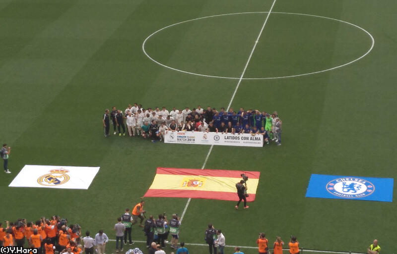 すると35分にはこの試合、一番のgolazo(ゴラソ/スーパーゴール)が生まれ、エリア外からカランブーがボールをネットに突き刺してくれたから、場内は大喝采。後半も再開早々、ギャラスが得点したチェルシーはラウールがPKでこの日、自身2点目を挙げた後にも元アトレティコのチアゴのスルーパスに抜け出したマルダがゴールを入れたものの、両チームの撃ち合いはここまで。最後は5-4でマドリーの勝利に終わったんですが、OBといっても比較的若い選手が多かったせいか、ゲームのテンポも良かったし、何より沢山ゴールを見ることができたため、スタジアムを訪れたファンは満足して帰ることができたんじゃないでしょうか。
