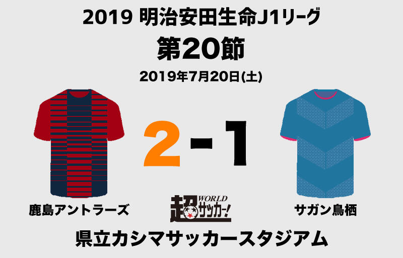明治安田生命J1リーグ第20節の鹿島アントラーズvsサガン鳥栖が20日に県立カシマサッカースタジアムで行われ、2-1で鹿島が勝利した。