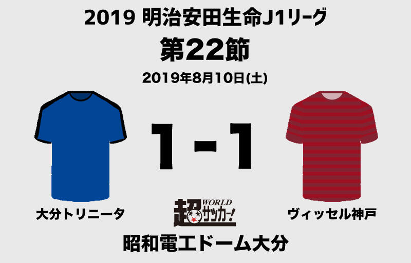 明治安田生命J1リーグ第22節が10日に昭和電工ドーム大分で行われ、大分トリニータvsヴィッセル神戸は1-1のドローに終わった。