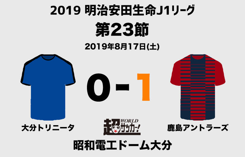 明治安田生命J1リーグ第23節が17日に昭和電工ドーム大分で行われ、鹿島アントラーズ(2位/勝ち点41)が大分トリニータ(6位/同34)に1-0で勝利した。