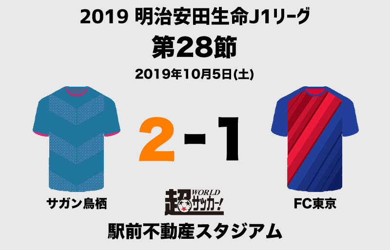 明治安田生命J1リーグ第28節が駅前不動産スタジアムで行われ、サガン鳥栖(16位/勝ち点28)が2-1で2-1でFC東京(1位/同53)を下した。