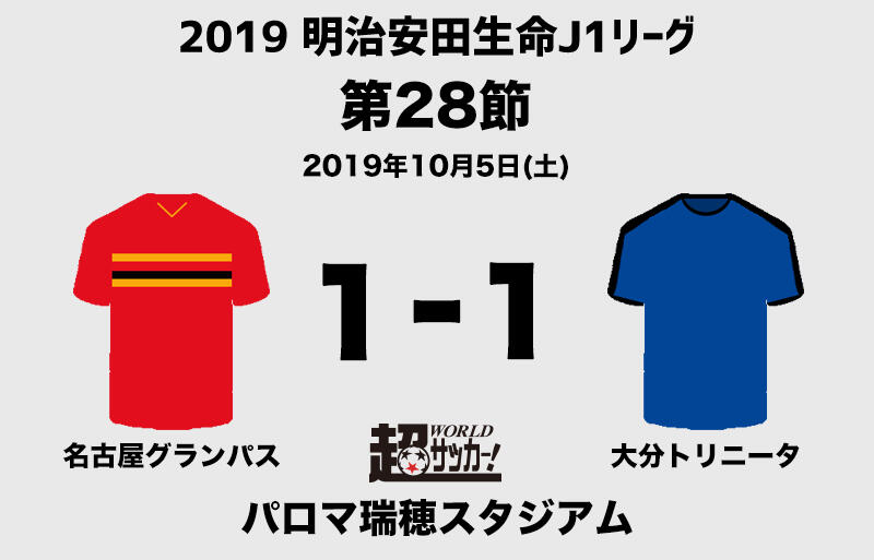 明治安田生命J1リーグ第28節の名古屋グランパスvs大分トリニータが5日にパロマ瑞穂スタジアムで行われ、1-1の引き分けに終わった。