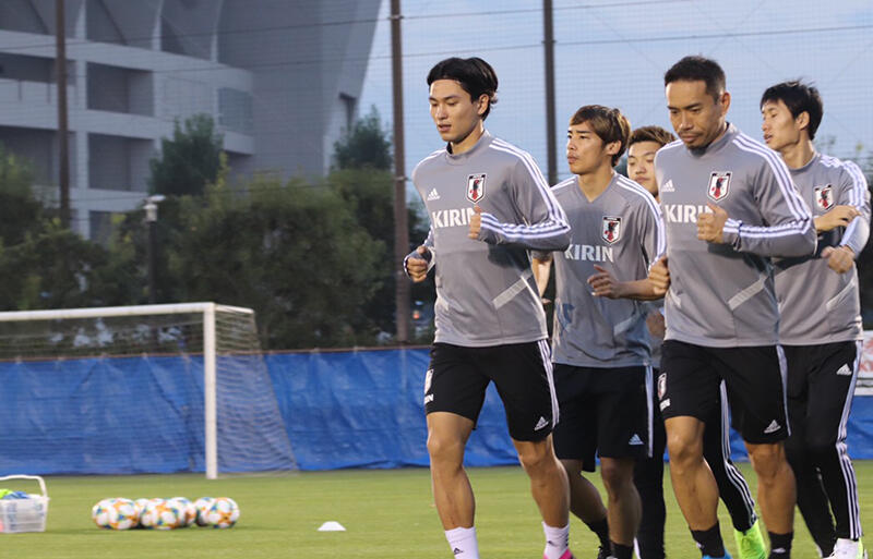 8日にトレーニングを実施した日本代表は招集メンバー全23名が集結。メディア陣に向けた15分の公開練習で、同日に合流した選手はランニングやストレッチといった軽めの調整を行った一方、初日から活動している選手はボールを使ったトレーニングを行い、非公開練習へと移った。