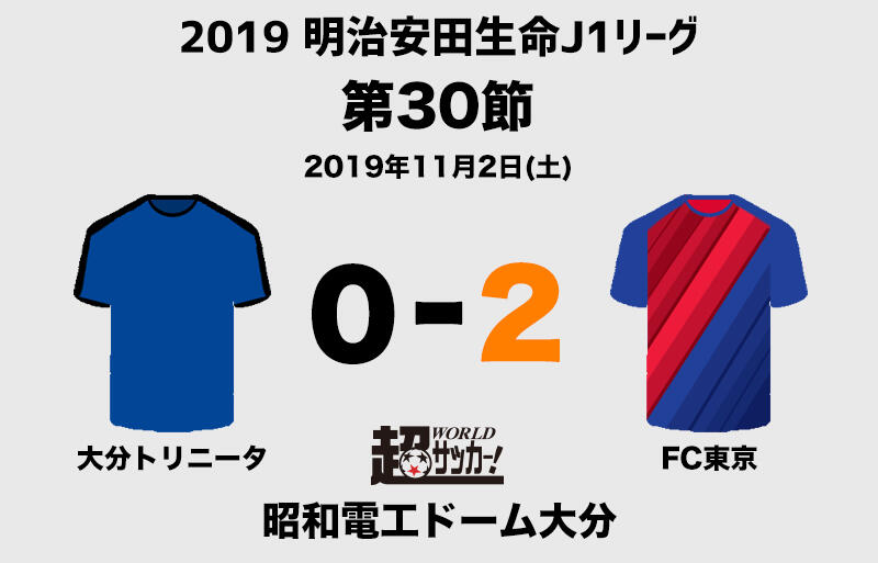 明治安田生命J1リーグ第30節の大分トリニータvsFC東京が2日に昭和電工ドーム大分で行われ、2-0でFC東京が勝利した。