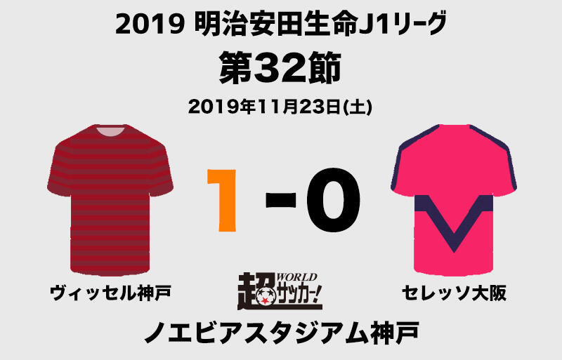 明治安田生命J1リーグ第32節のヴィッセル神戸vsセレッソ大阪が23日にノエビアスタジアム神戸で行われ、1-0で神戸が勝利した。