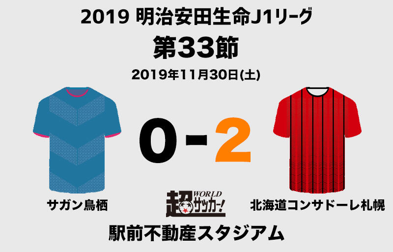 30日、明治安田生命J1リーグ第33節のサガン鳥栖vs北海道コンサドーレ札幌が駅前不動産スタジアムで行われ、0-2で札幌が勝利した。
