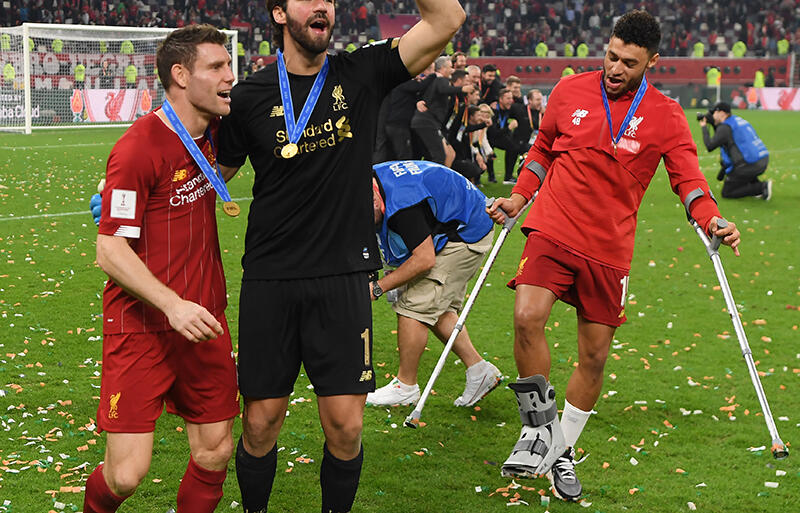 カタールでのFIFAクラブ・ワールドカップで初優勝を成し遂げ、リバプールへと戻ってきたチーム一行。しかし、決勝ではオックスレイド=チェンバレンが負傷。75分にピッチを後にし、セレモニーでは松葉杖姿で登場していた。