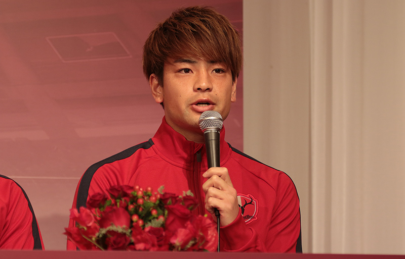 「横浜F・マリノスから来ました広瀬陸斗です。全てのタイトルを獲れるようにピッチ内でもピッチ外でもチームのために貢献したいなと思います」◆DF永戸勝也(ベガルタ仙台)